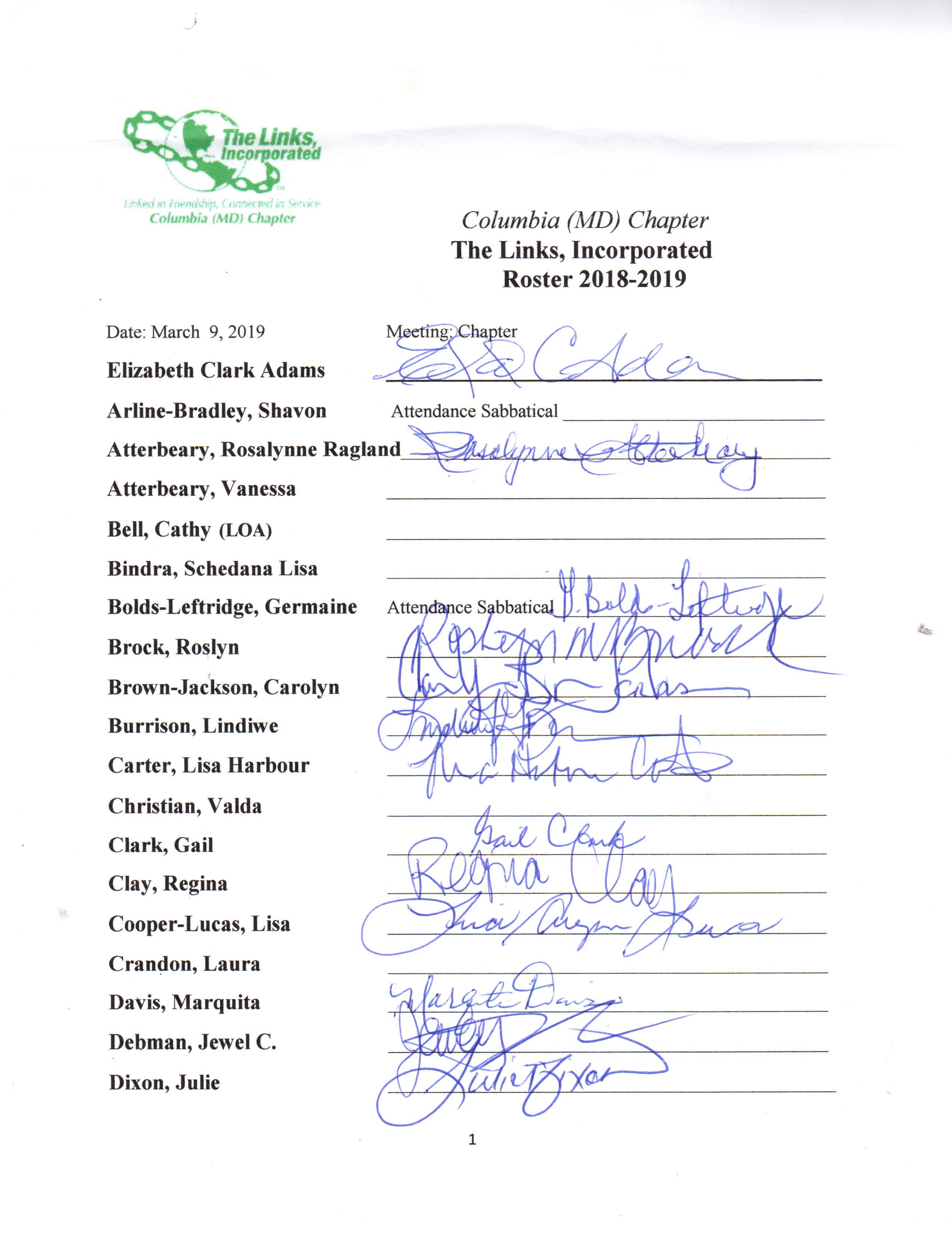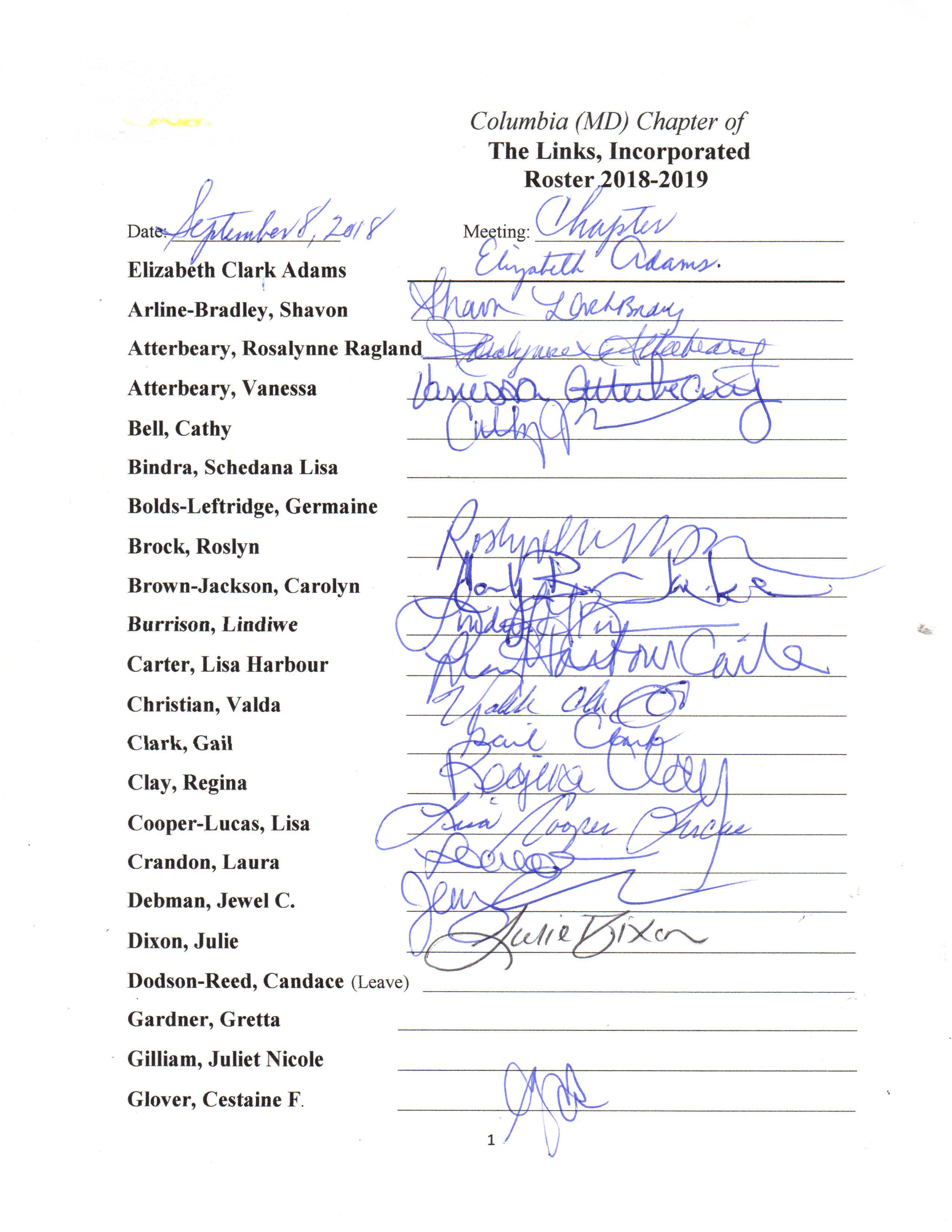 Chapter Mtg Attendance 2018-2019